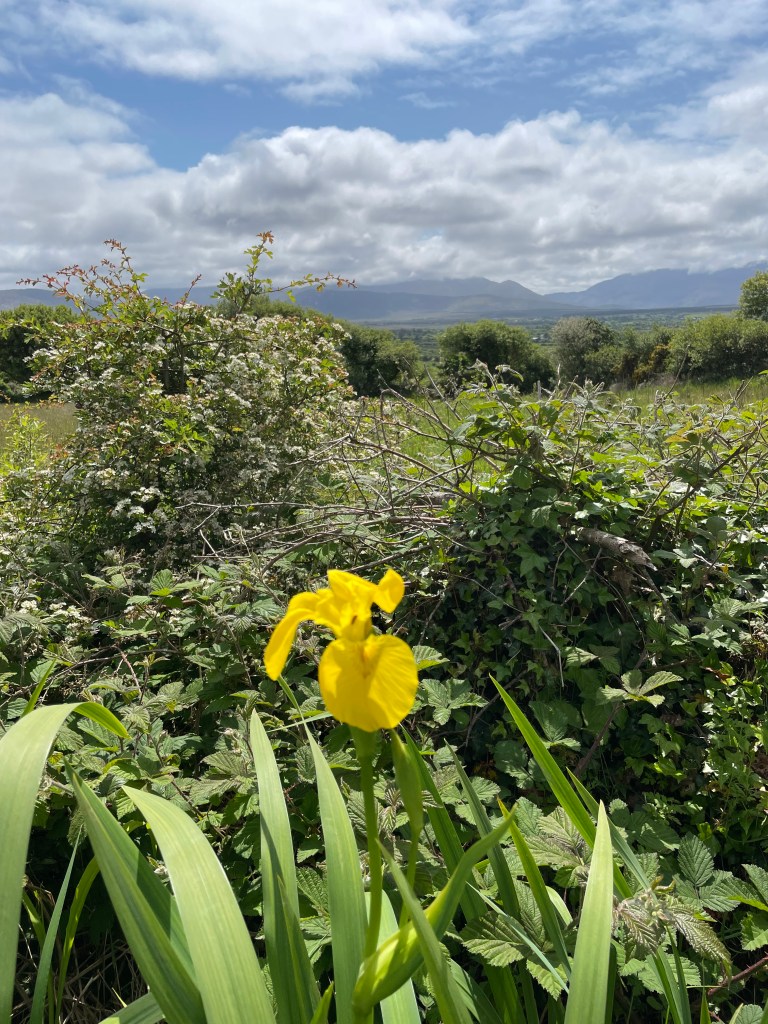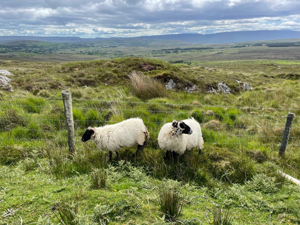 Saturday, May 27 – walked the Skelp and and Brackloon Forest trail today … literally began less than 300 feet from our house. It was a fabulous, wonder filled hike. 9 miles (whew!) through farm paths and sheep fields ( soooo many sheep!), country one lane roads, view of the back side of Croagh Patrick, forest trails, and the final ascent to our house! Such diversity to savor! And another day of partial sunshine and mid sixties weather. How fortunate we are with this fantastic weather!