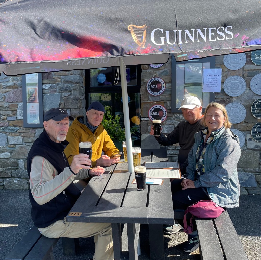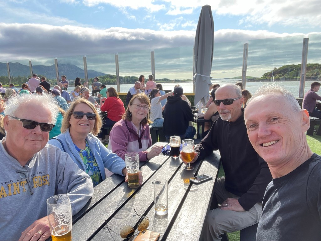 An unbelievable, breath taking view from our airbnb (Headford House) in Westport overlooking Clew Bay! Mom is certainly smiling down as we settle in to her ancestral land. Keith and I traveled to Ireland in 2001 with Mom – it is great to be back with my brothers Bill and Bob, and cousin Rick and his wife Karen.